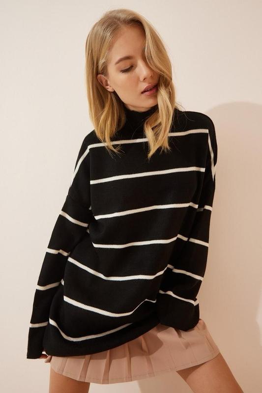 Светр подовжений в полоску Розмір оверсайз (42-48) Тканина: машина в'язка Виробництво Туреччина Довжина виробу 73 см Довжина рукава від горловини 72 см ОГ 130 см