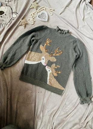 Очень нежный новогодний свитерик Next серо-болотного цвета. Стан идеален. Размер 34 (XS), но лучше ориентироваться на замеры. Длина по спинке 54 см. ПОГ 46 см. Ширина резинки внизу 43 см. Длина рукава от горловины до конца манжет 68 см. Доп. фото и замеры по требованию.