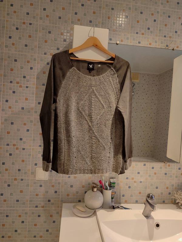 Оригинал, состояние нового, без дефектов. Перед и манжет объёмная вязка, рукав и сзади тяжёлый, бархатистый трикотаж. 48,низ ширина 55,длина рукава от горловины 72,длина 65,5.