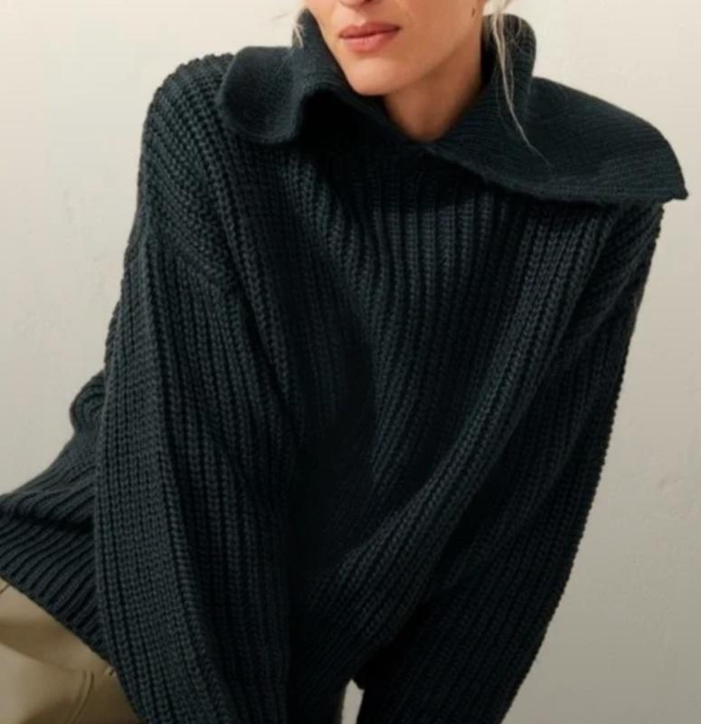 🌿темно зеленый свитер с воротничком H&M свободного кроя с манжетами Размер:S Замеры:ПО груди 50 см, длина 54 см, рукав от горловины 75 см