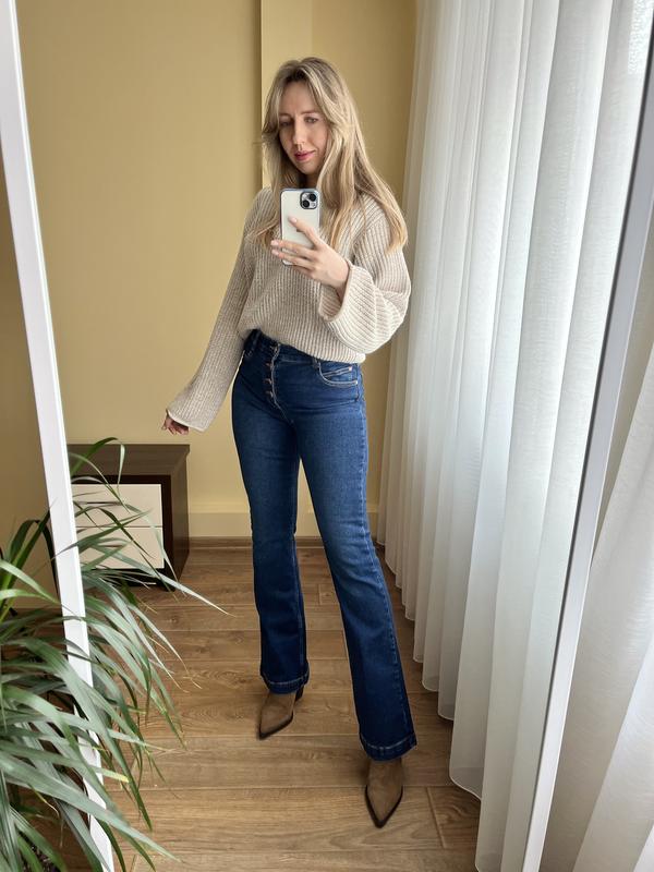 〰️ Джемпер H&M с расширенными рукавами 〰️ Джемпер слегка укороченный, фасона оверсайз, красивого светло-бежевого цвета. Состав: 100% акрил. ✔️ Размер S <unk> пог 53, длина 51, рукав со спущенным плечом 72