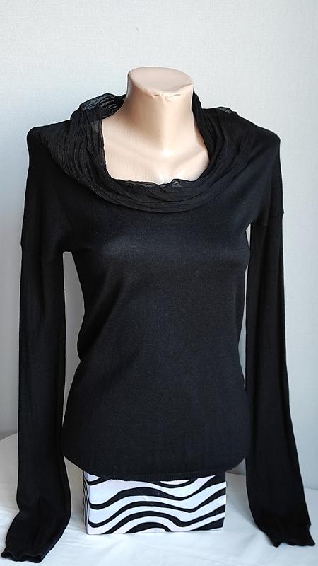 Тоненький светрик в ідеальному стані. Матеріал хомутика - 100% шовк. Матеріал самого светру - 85% шовк, 15% кашемір. Рукав приспущений. Розмір вказано М. Заміри: довжина від плеча - 61 см; довжина рукава від коміру - 74 см; НОГ - 40 см; НО низу - 35 см. Додаткові фото та заміри надам за потреби. Дивіться інші мої оголошення.