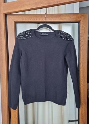 Нарядный шерстяной свитерик, указатель размер l, но лучше сядет на s,m Замеры: плечи - 43, длина рукава - 60, пог - 45, длина изделия - 55