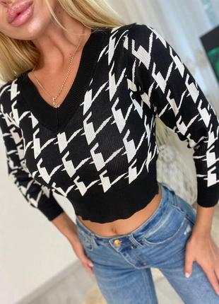 ♟♟♟Новинки ♟♟♟ Укорочений светр «гусяча лапка» Материал машинная вязка Размер универсал хс-м 2 расцветки Длина изделия 43 см 585 гр