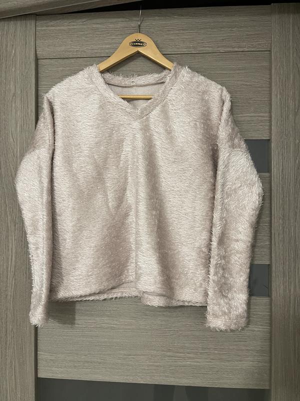 Свитер-травка серебристого цвета, теплый, рукав приспущен. ПОГ-52см, Длина по спинке-52см, длина спереди-42см. Длина рукава от горловины-67см.