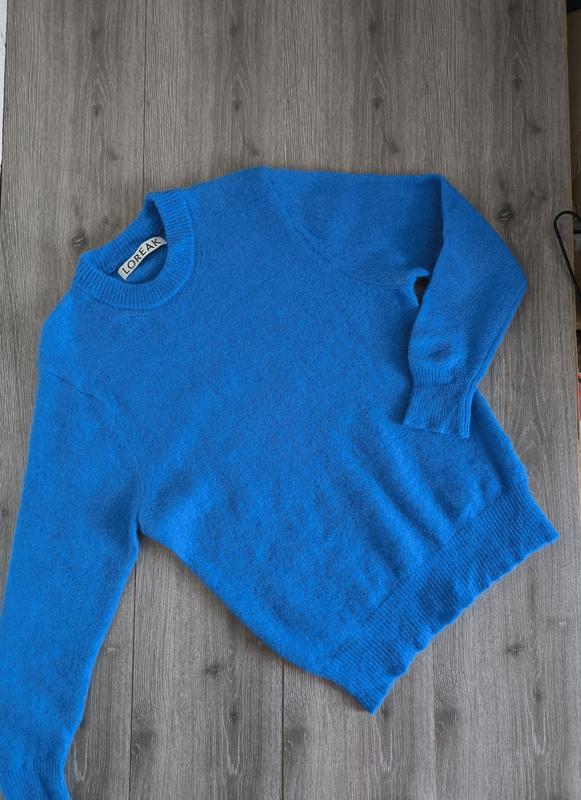 Тёплый шерстяной свитер красивого сине-голубого оттенка.Мохер 40% , 23% шерсть мериноса. Длина 66 ПО под руками 49 ПО бёдер 37+ плечи 42 рукав 61