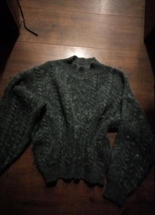 Свитер мохеровый,женский,густой вязки,плотный,теплый,резинка на манжетах,на поясе,на горловине.Свитер широкий,рукава широкие.Длина рукава 56,длина свитера50,ширина пояса 37,ширина в груди 60.