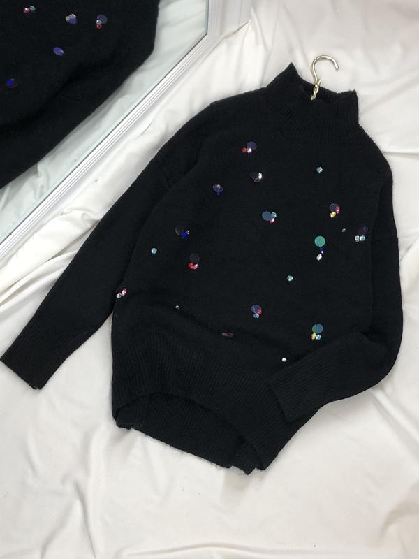 Черный свитерик с пайетками🖤 В идеальном состоянии❗️ Размер указан Хс,также красиво ляжет на С-М По деталям в дырект💌