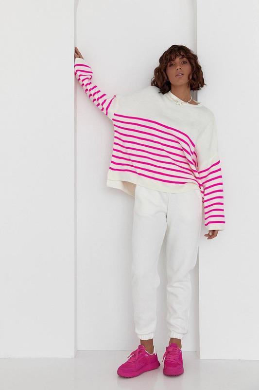 ➖Размеры: one size 42-46, длина спереди около 59 см, по спинке 67 см, рукав от горловины 69 см, полуобхват груди 64 см ➖Ткань: машинная вязка (50% хлопок, 50% акрил) ➖Цвет: розовая полоска ➖Производитель: Турция