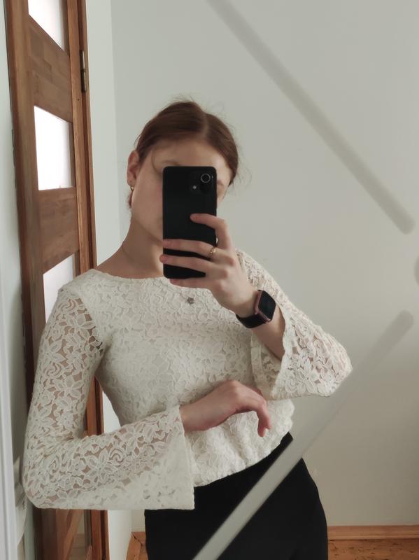 продаю кофту з мережива рукавик кльош розмір S бренд h&m Заміри: Пів обхват грудей 42 сантиметри Пів обхват в талії 41 сантиметр Дужина 50 сантиметрів Довжина плечей 38 сантиметрів  Довжина рукава 58 сантиметрів