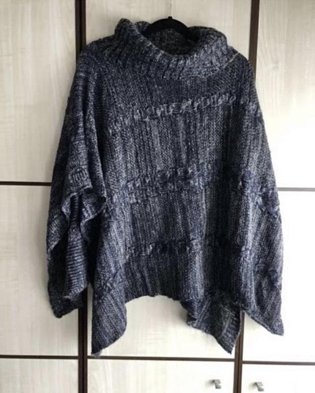 Шикарный свитер пончо. Шерсть с акрилом 50 на 50). Бирка срезана. Широкая горловина. Длина от 65 до 83 см. Подойдёт на размеры от S до L