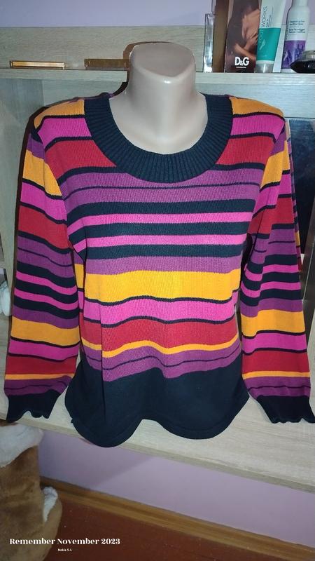 женский фирменный свитер от Skovhuus, резинка не рукави растянутая, легкая вязка, ☝️ состояние очень хорошее 🏷️ 46-48 📏 ПоГ 51 длина 57 🎨 разноцветный