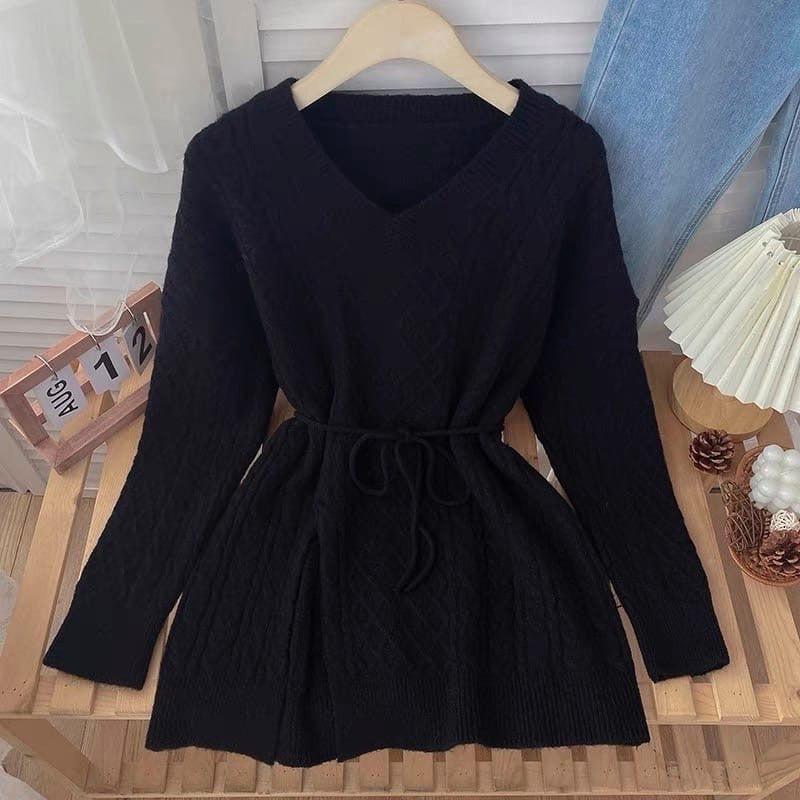 905 Свитер с пояском😍 Цвет: черный Ткань: шерсть с акрилом Размер: универсал 42-46 Длина 70см Цена: 550 грн💥