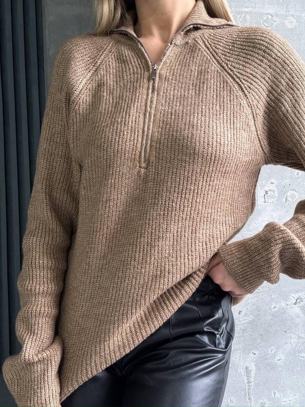 Подовжений светр із щільного трикотажного полотна. Модель вільного крою, із заниженою лінією плеча, Комір із широкою горловиною застібається на металеву блискавку. • Розмір 42-48 • Довжина см • ПОГ см • Ціна 1050грн 3910