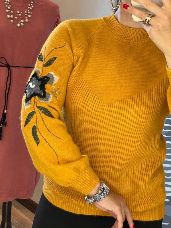 ЧАРІВНИЙ СВЕТР ВІЛЬНОГО КРОЮ З АКУРАТНИМ КОМІРОМ СТІЙКА ВИГОТОВЛЕНИЙ З ТРИКОТАЖУ МАШИННОГО В'ЯЗАННЯ З РЕЛЬЄФНИМ ВІЗЕРУНКОМ ДЕКОРОВАНИЙ ЧАРІВНОЮ КВІТКОВОЮ АПЛІКАЦІЄЮ СВЕТР МАЄ ЧУДОВИЙ ВИГЛЯД, ВІН ЗІГРІЄ ВАС У ПРОХОЛОДНУ ПОРУ РОКУ І СТАНЕ НЕЗАМІННОЮ РІЧЧЮ ВАШОГО ОСІННЬО-ЗИМОВОГО ГАРДЕРОБА РОЗМІР ЄДИНИЙ 42-44 ДОВЖИНА 58-60 СМ, НАПІВОБХВАТ ГРУДЕЙ 47 СМ - ДОБРЕ ТЯГНЕТЬСЯ, ДОВЖИНА РУКАВА ВІД ШИЇ 68 СМ КОД 0495