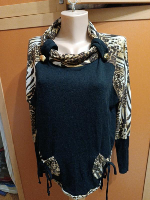 колir черно коричневый, размир48- 50-52, замиры: длина 59, грудь 58,низ ширина 53, рукав от горловины 70, оверсайз, бirка зризана