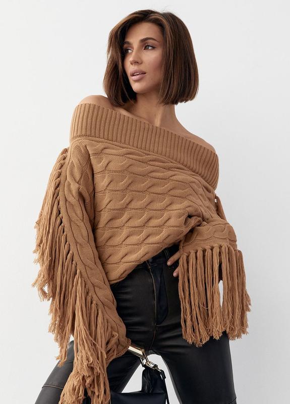 🔥Укорочена оверсайз модель виконана з крупної в'язки в косички, з відкритими плечима та прямим низом. Довгі рукави на кшталт "кажан" прикрашені бахромою. 🎨Колір:коричневий, молочний, чорний 🧵Матеріал В'язка 🧵Склад тканини: 100% акрил ✔Розмір універсальний:42-48 ▪️Довжина виробу:48см ▪️Довжина рукава:68см ▪️Об'єм грудей:110см-118см 💳Ціна 1350грн Арт1276 ‼️Кількість обмежена ‼️