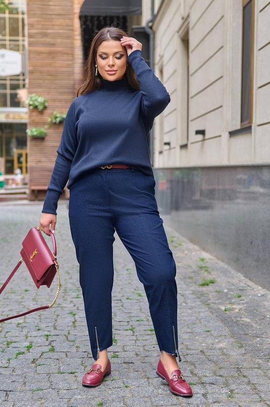 Теплый шерстяной гольф свитер под шею больших размеров 56-62 темно-синий