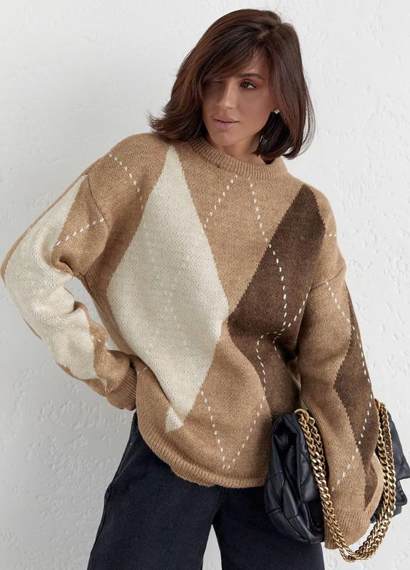 🔥Модель оверсайз прикрашена спереду, ззаду та на рукавах по центру візерунком у ромби. Манжети прямого низу, довгих рукавів та окантовки круглої горловини виконані з в'язки в рубчик. 🧵Матеріал: Машинна в'язка 🧵Склад тканини: 100% акрил 🎨Колір:коричневий ✔Розмір універсальний 42-48 Об'єм грудей:122см Довжина виробу:70см Довжина рукава:78см 💳Вартість:1290грн Арт10910 ‼️Збір замовлення 1-3 дні ‼️
