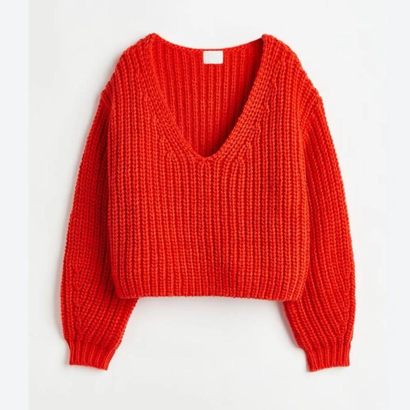 коралловый свитер H&M объемной вязки, содержит шерсть 5% Размер XL Замеры ПО груди 65 см, длина 57 см, рукав от горловины 74 см