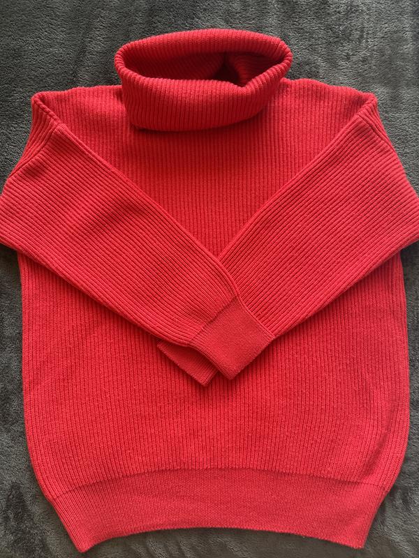 свитер женский красного цвета, оверсайз, с высокой горловиной, приятный к телу не колется Длина 67 см Ширина 59