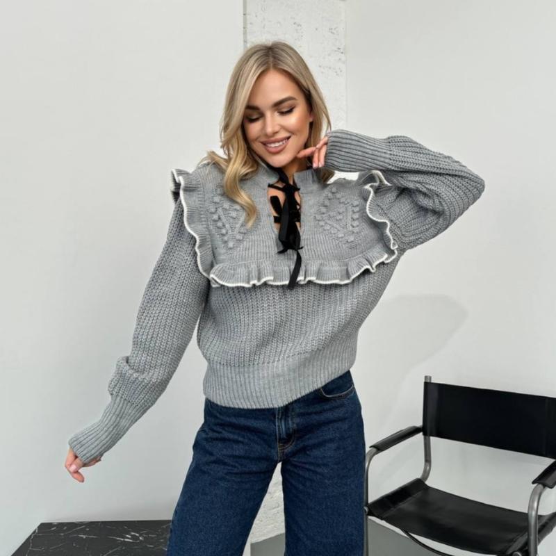 Свитер с ажурным плетением для утонченных образов с брюками и юбками. Нежный трикотаж создает нужный объем и легкость.