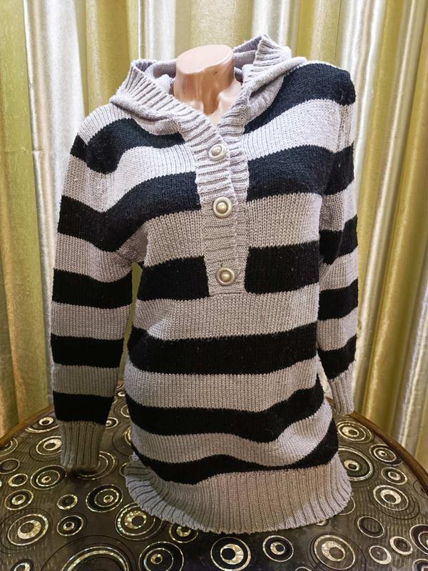 Теплая вязаная кофта с капюшоном. Размер 46