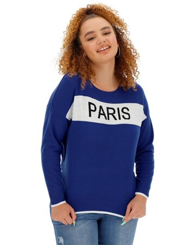Свитер с надписью Paris цвета электрик от Simply be. Размер M-L Замеры ПОГ 60 см Рукавчик от горловины 74 см Длина 64 см