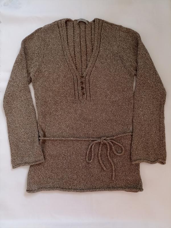 Кофта туніка Marks & spencer, бежево- сірого кольору,розмір 14, 60% котон,40% акрил,на зав'язку,довжина 68см,ширина плечей 38-40см,півобхват грудей від 43см до 53см,півобхват талії так само,довжина рукава 60см,ширина від 15до 19см зверху,13-15см посередині.Довжина горловини 21см.Класно виглядає поверх гольфа.Переглядайте інші мої оголошення,хороші ціни на все👍