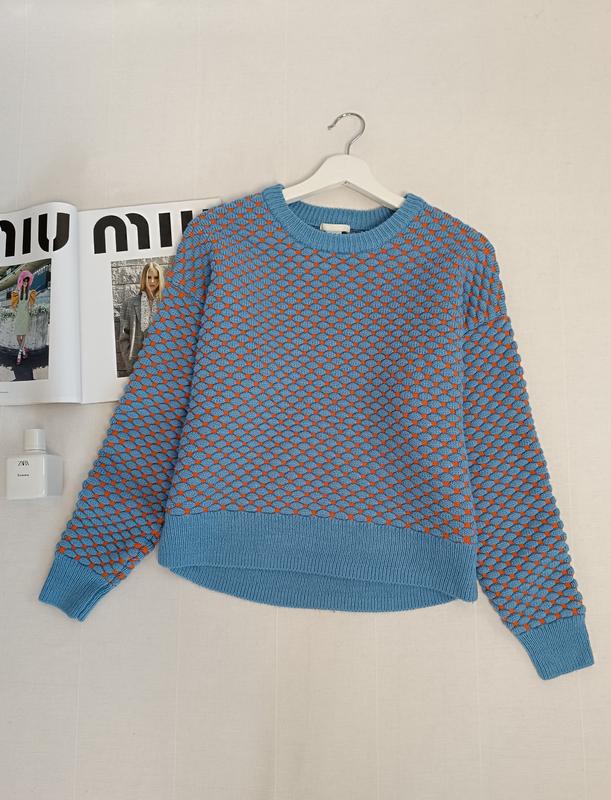 🌿синий свитер в принт H&M свободного кроя Размер:XS Замеры:ПО груди 54 см, длина 55 см, рукав от горловины 67 см