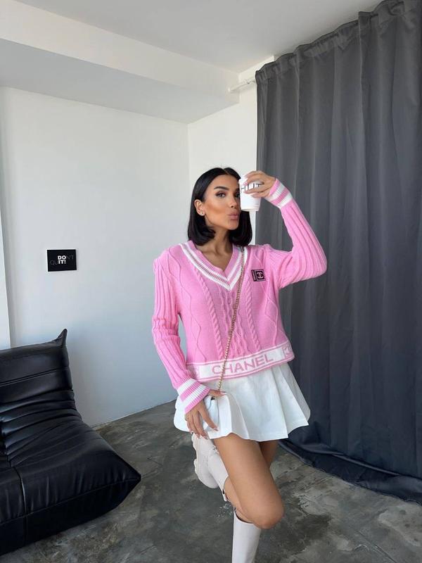 🔝🔝Опять в наличии🔝🔝 Стильные свитерики Ch@** с V-образным вырезом и брендовым лого ▫️Белый, черный, розовый ▫️Высокое фабричное качество ▫️Турция 🇹🇷 ▫️Размер стандарта Длина 48 см Ширина 48 см Рукав от горловины 73 см