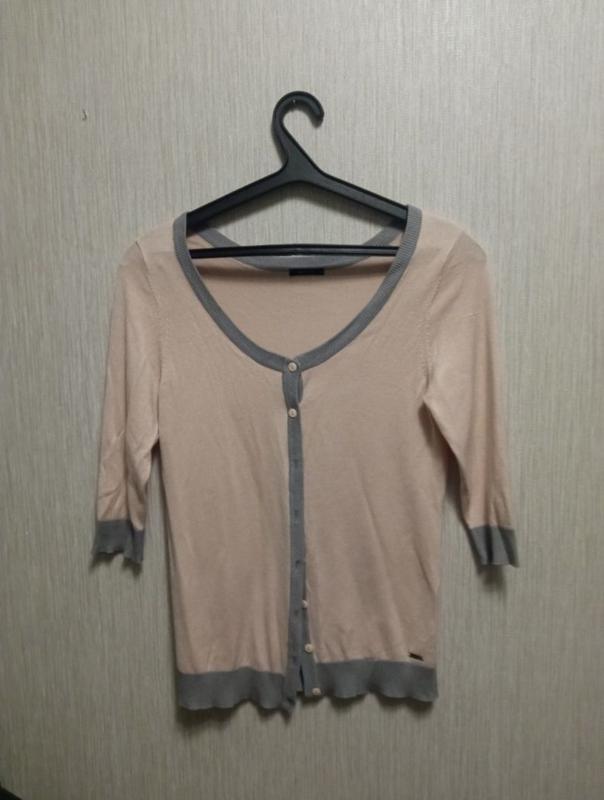 Женская кофточка. В хорошем состоянии. Размер указан М, но может быть и на С. Обхват груди 86 см Обхват талии 80 см. Длина от плеча до низа 63 см Рукав тричетверты