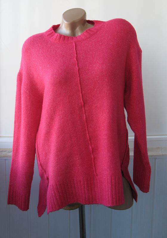 В отличном состоянии (без катышков). Но есть недостаток: фото 5-6 (очень малозаметно, находится внизу сбоку у шва). Размер европейского М (165/96А). Ширина под руками 52 см, в бедрах 58 см, длина рукава с плечом 70 см, длина свитера спереди 60 см, по спинке 65 см. Состав: 70% акрил, 28% полиэстр, 2% эластан. Одето на манекен размер S с настройками 85-60-92 см.