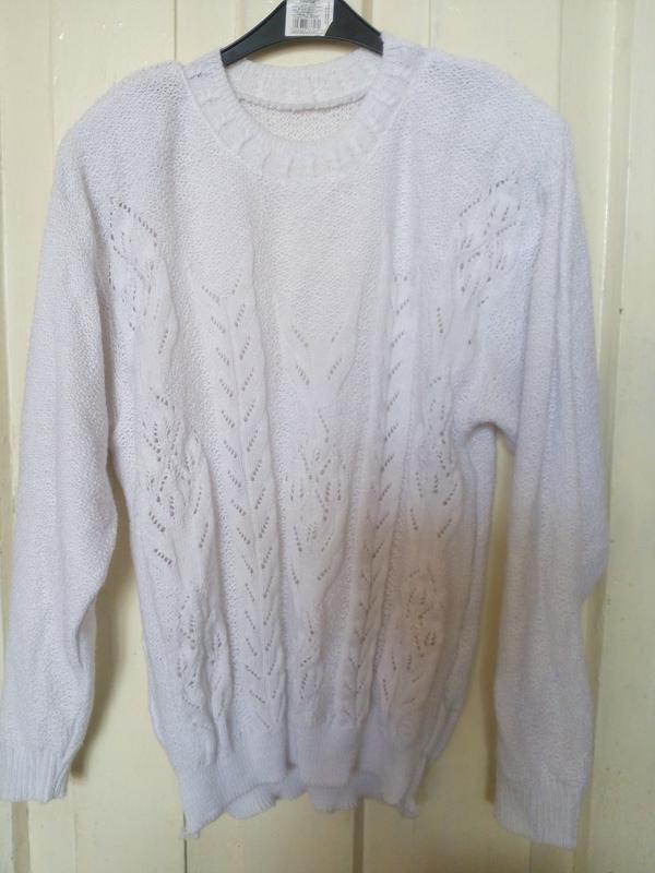 Cвитер женский с вязаным узором спереди. Материал -акрил. Длина по спинке 62 см, есть подплечники.
