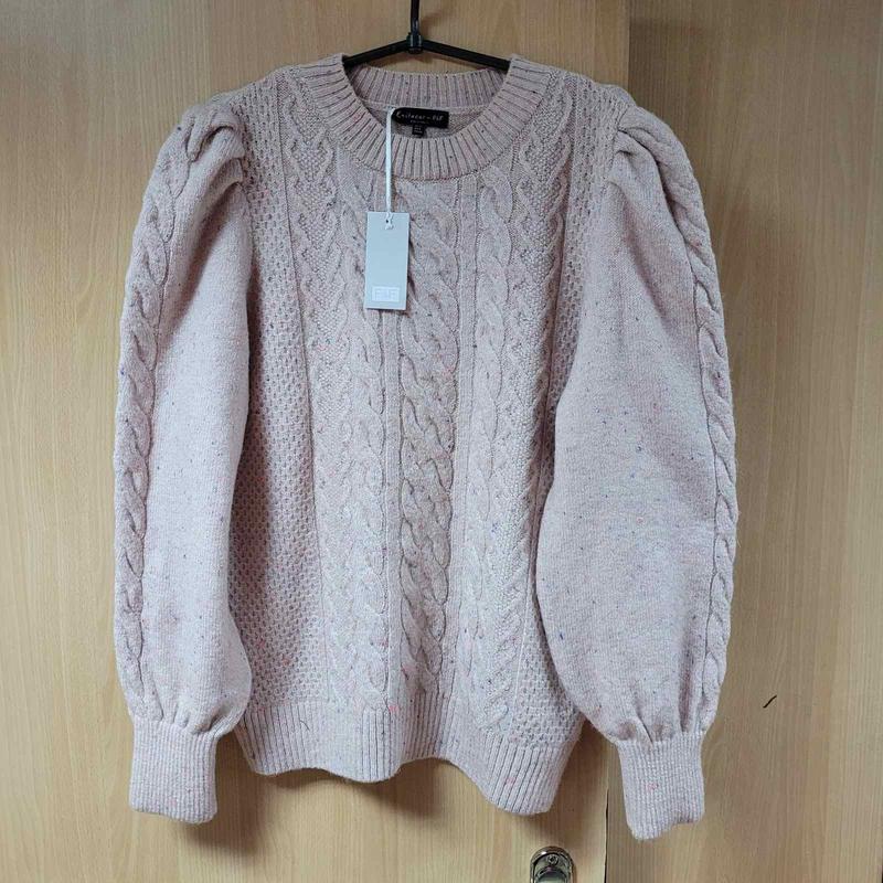 Свитер с оригинальным рукавом пудрового цвета Ог 106+, низ 100+,рукав 68, длина 69.