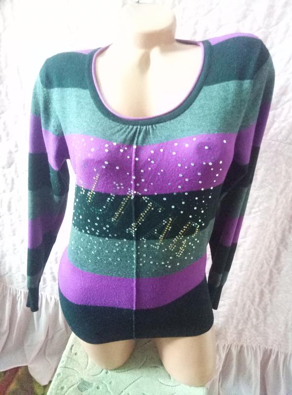 Бавовняний світер Плечі 36 см ПОГ 46-60 см Довжина 56 см Рукав 57 см Повідпадали стрази Перед замовленням уточняйте деталі