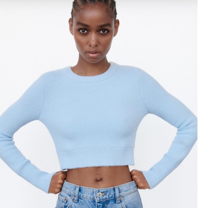 🌿голубий светр від Zara серії soft гарно тягнеться Розмір:S Заміри:ПО грудей 38 см, довжина 40 см, рукав 62 см