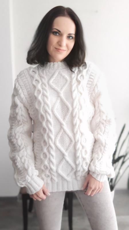 В'язаний светр ручної роботи. Модель унісекс. Розмір оверсайз (L-XL). Светр зв'язаний із напіввовни. Теплий, м'який, пряжа не колюча.