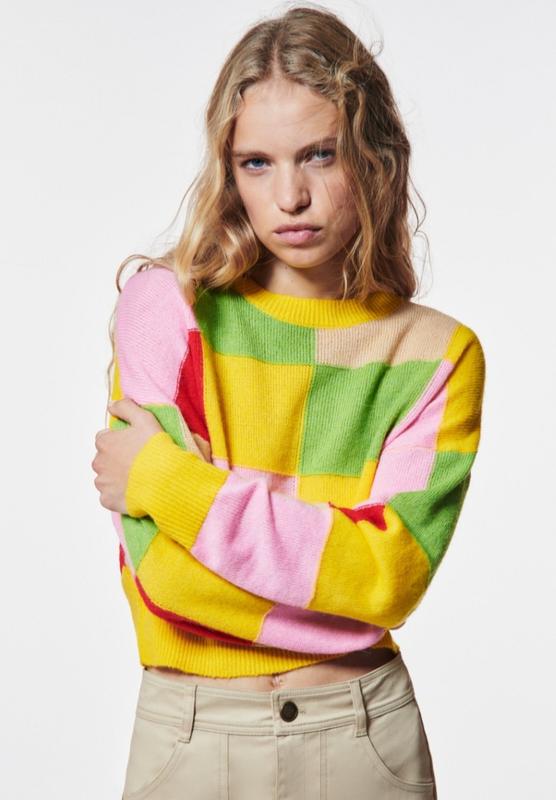 🌿яркий свитер от Zara с манжетами, содержит шерсть 11% и альпаку 5% Размер:S Замеры:ПО груди 50 см, длина 48 см, рукав от горловины 72 см