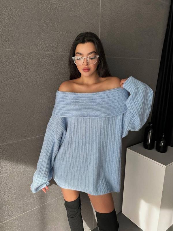 • Светр 🫐 - Модель: 6959 - Производство Турция - Цена: 960 грн - Размер: универсальный (42-46) - Ткань: машинная вязка (100% polyester ) - Замеры (см) Длина 61 Рукав 55 ПОГ 56