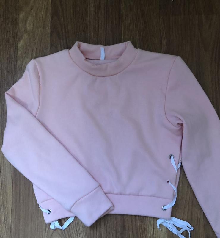 Кофта укороченная на размер xs-s-m. Стан- идеальный, никаких недостатков. Цвет чуточку ярче, чем на фото (более розовый). Внутри утепление.