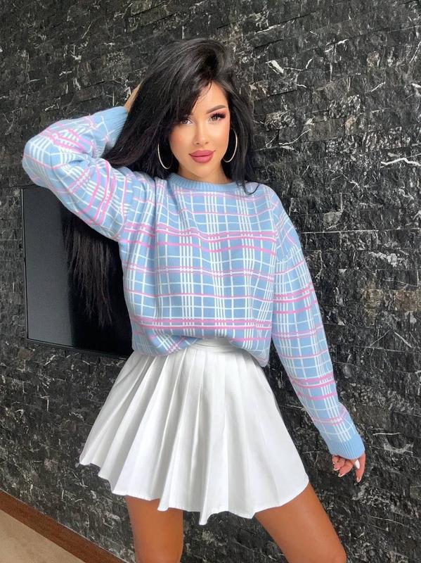 Светр Клітинка Машинна в’язка Розмір єдиний 42-46 30% вовна, 70% акрил Колір рожевий, блакитний, чорний з рожевим, чорний з м’ятним Всі фото РЕАЛ! 🔹Довжина по спинці 55 см 🔹Напівобхват по грудях 54 см 🔹Довжина рукава від плеча 49 см 🔹Довжина рукава від горловини 70 см