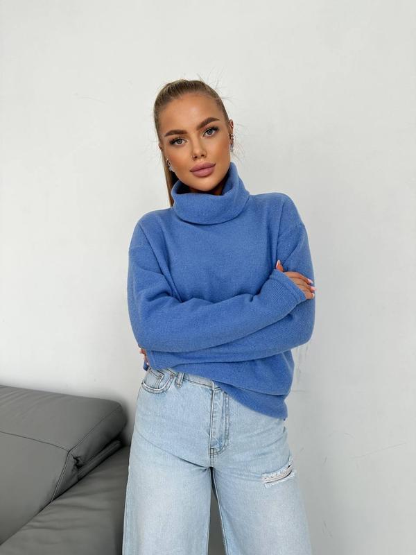Женский свитер с высоким воротником Арт. 41859, 41856, 41853, 41850, 41839 ▪️ материал: ангор вязка ▪️ цвет: бежевый, темно-серый, оливковый, синий, розовый ▪️ размеры: 42-46 Ориентированные замеры по готовому изделию: 42-46 (ОГ 104, длина 67, длина рукава от горловины 71)