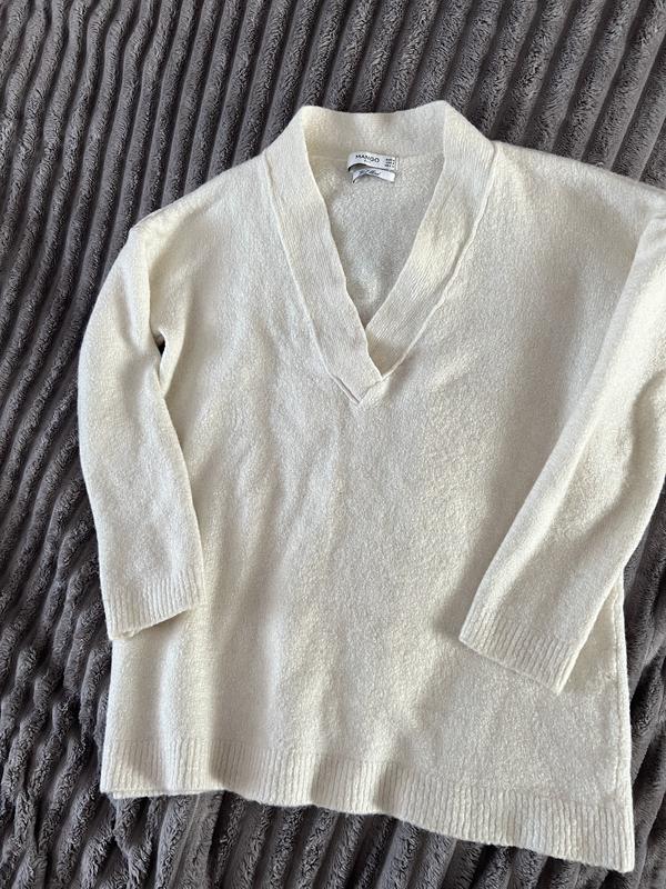 Свитер с V образным вырезом, с добавлением шерстяной нитки, достаточно теплый, носила на размер XS как оверсайз