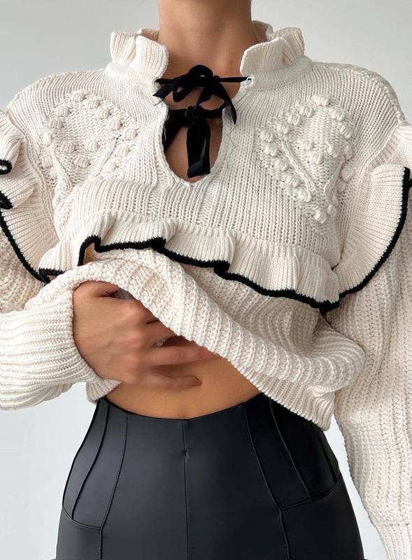 Светр Модель 3820тм Производство Турция Размер единый 42-46 Ткань: машинная вязка (77% акрил, 23% полиэстер) Цвет: молочный 📐Замеры, см Длина переда изделия 49см Довжина рукава по внутр.шву 44см Длина рукава от горловины 65см