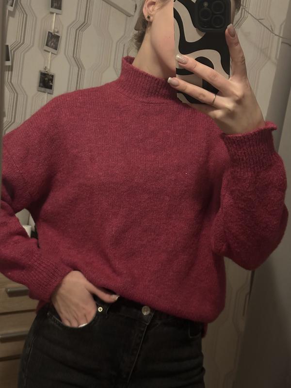 Яскравий светр під горло малинового кольору. Розмір М. В житті колір яскравий, як на другому фото.
