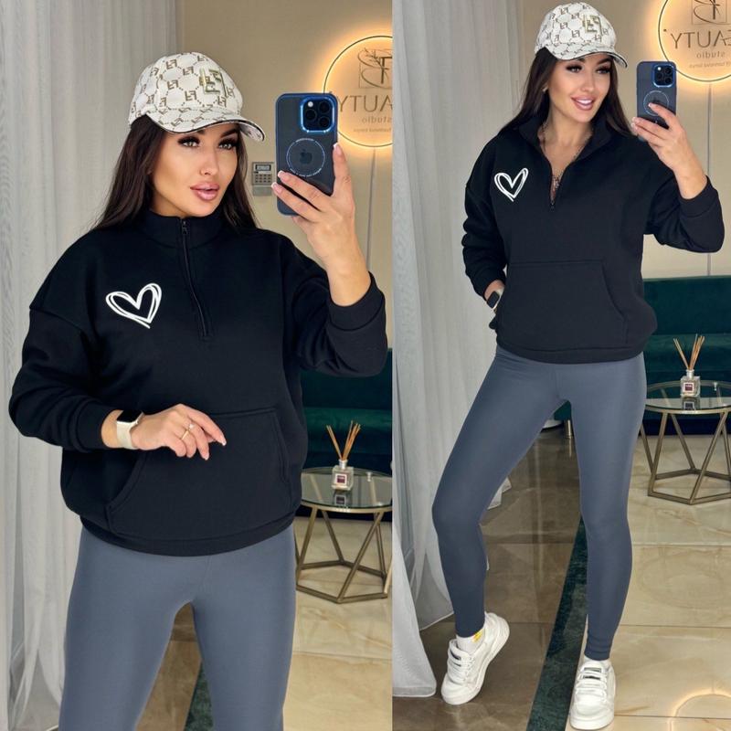 Кофта Модель 2071 Ткань трехнитка на флисе Размеры: 1(42-46), 2(48-52) Цвета: бутылка, черный, электрик, вишня модн 660.00 грн