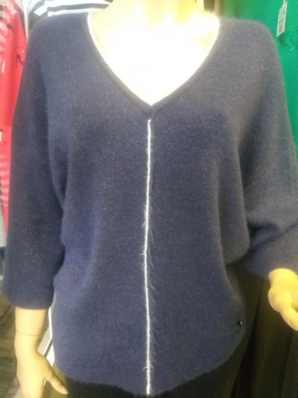 Свитер темно-синего цвета. Производитель Турция Serianno. Длина рукова 7/8.Модель оверсайз. Р.48-50: ОГ 120 см Д 66 см Р. 54-56: О.Г 140 см Д. 70 см