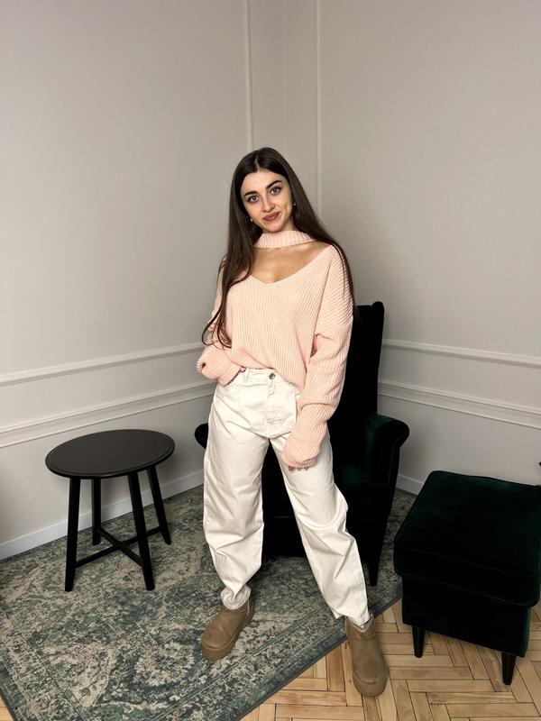 Стильная вязаная кофточка нежного розового цвета. Подойдет на размер s-m. Фото выполнено принтова из нашего мазана, состояние идеально