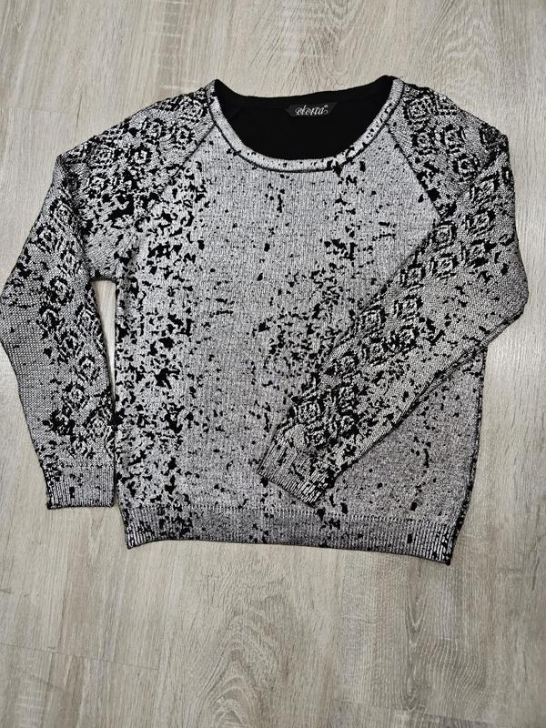 Очень красивая и стильная кофточка.В серебряно-черном цвете, красиво переливается, а фото нажаль не передает.На рукавчике интересный узор.В идеальном состоянии, одевала 2 раза.Размер s. Производитель: Турция